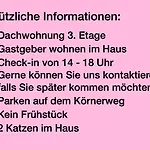 Mutfak olanakları arasında elektrikli su ısıtıcısı, buzdolabı, cam eşyalar vardır. Dresden havaalanına araçla 21 dakika mesafede yer almaktadır.